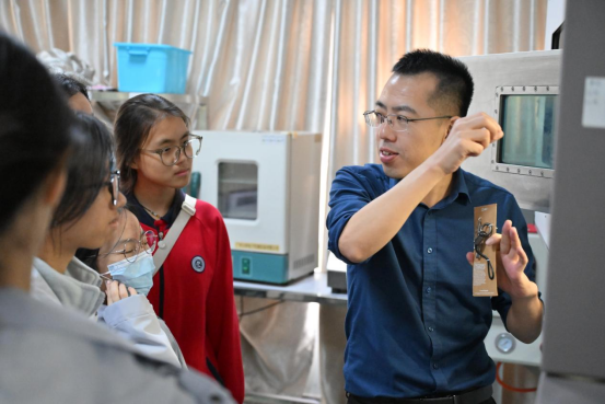 在机械工程学院3D打印技术重点实验室内,精密的打印设备正有条不紊地运转。赵日杰博士详细讲解了3D打印技术的原理、应用场景及最新研发成果,学子们近距离观察打印过程,不时驻足询问,亲身感受智能制造技术的独特魅力。