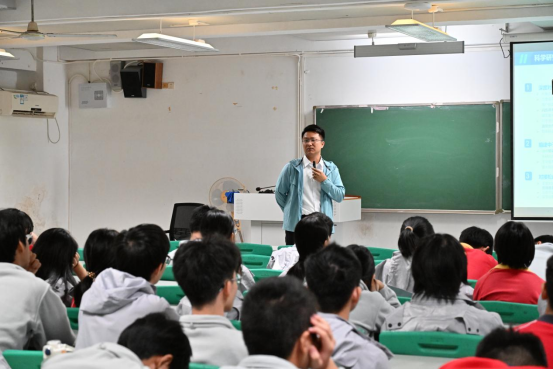 参观结束后,学子们前往6E204教室,认真聆听了曲万军老师带来的主题讲座。曲万军老师围绕学校的发展历程、办学理念、学科布局及学院的专业特色、师资力量、人才培养成果等内容展开详细阐述,从学校的建校初心到学院的学科建设突破,从教学科研平台到学生创新创业成果,全方位、多角度地为学子们展现了学校和学院的良好发展面貌,让大家对未来的学业规划和发展方向有了更清晰地认识。