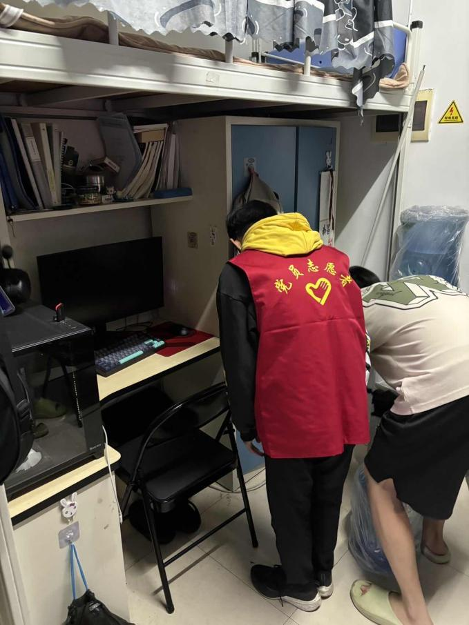 每日下午,由学院党员志愿者和班团骨干组成的检查小组分批集合,深入学院研究生宿舍及相关学生社区,开展排查与清理。志愿者们逐室走访,细致检查卫生死角,协助清理堆积杂物,并对阳台、洗漱间等区域的闲置花盆、水桶、托盘等易积水容器进行翻倒与清理,从源头上阻断蚊虫滋生条件。检查过程中,志愿者们还与留校同学面对面交流,普及个人防护知识,提醒做好健康自测,遇有异常情况及时上报。针对发现的问题,均通过拍照记录、即时反馈的方式督促整改,确保各项措施落到实处。
