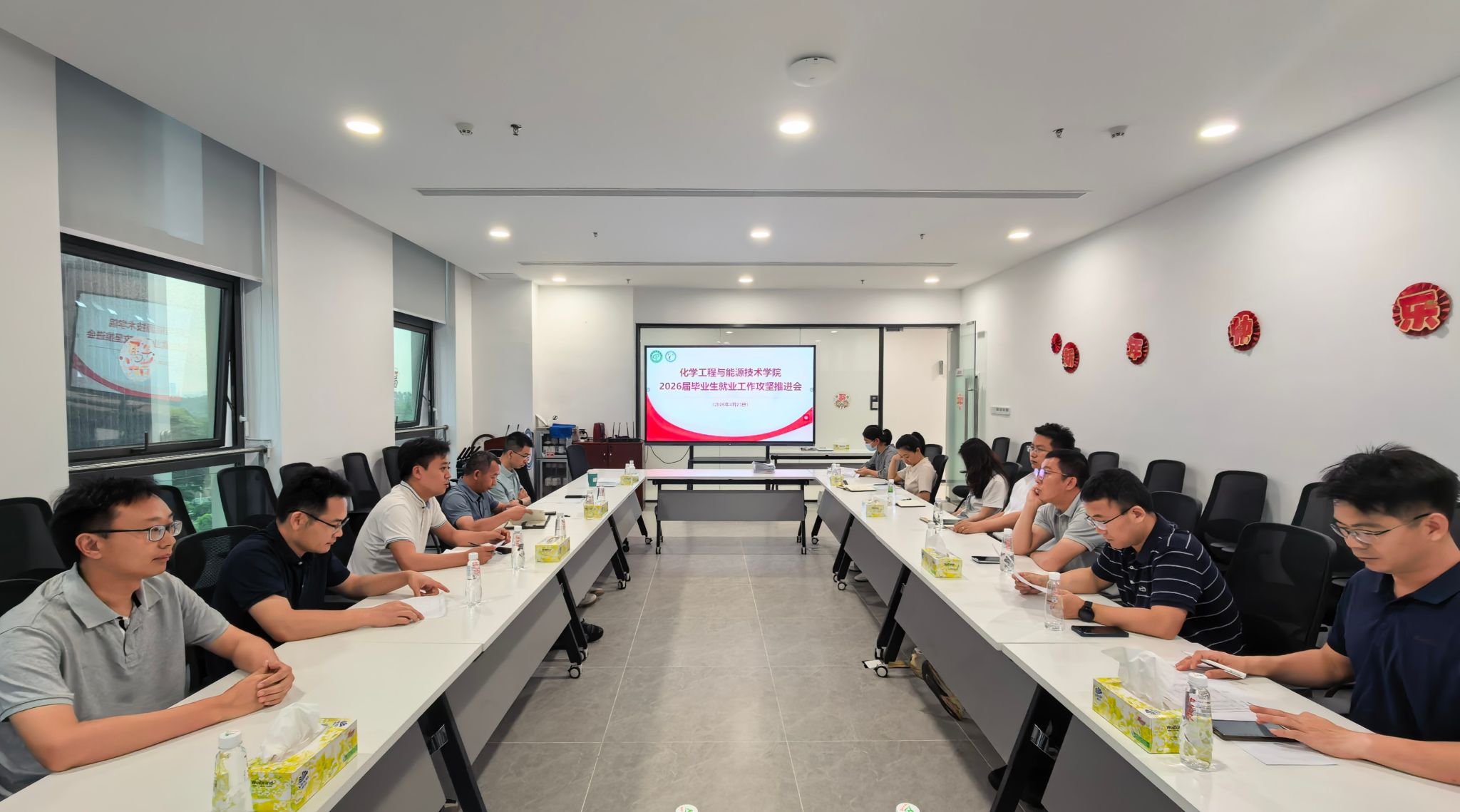 为全力打好毕业生离校前就业攻坚战,加快促进毕业生高质量充分就业,4月23日,化能学院召开2026届毕业生就业工作攻坚推进会,学院领导班子成员、系主任、毕业生班主任及年级辅导员参加会议。